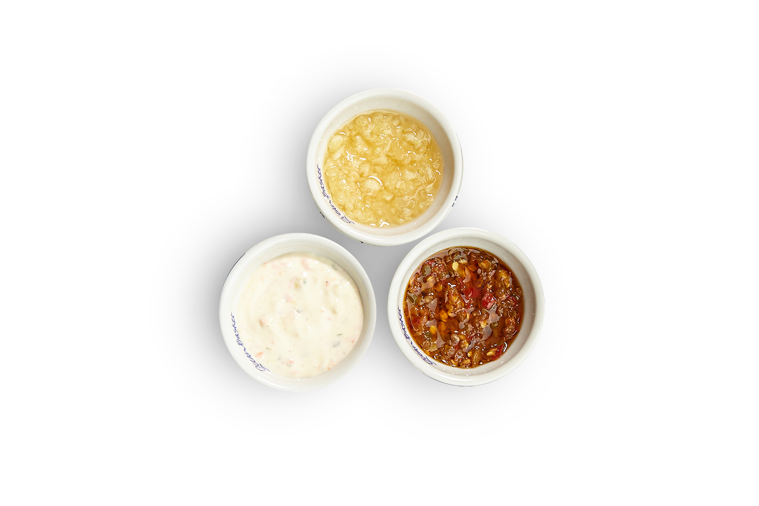 Набор наших фирменных соусов: чили, тар-тар и чесночный.