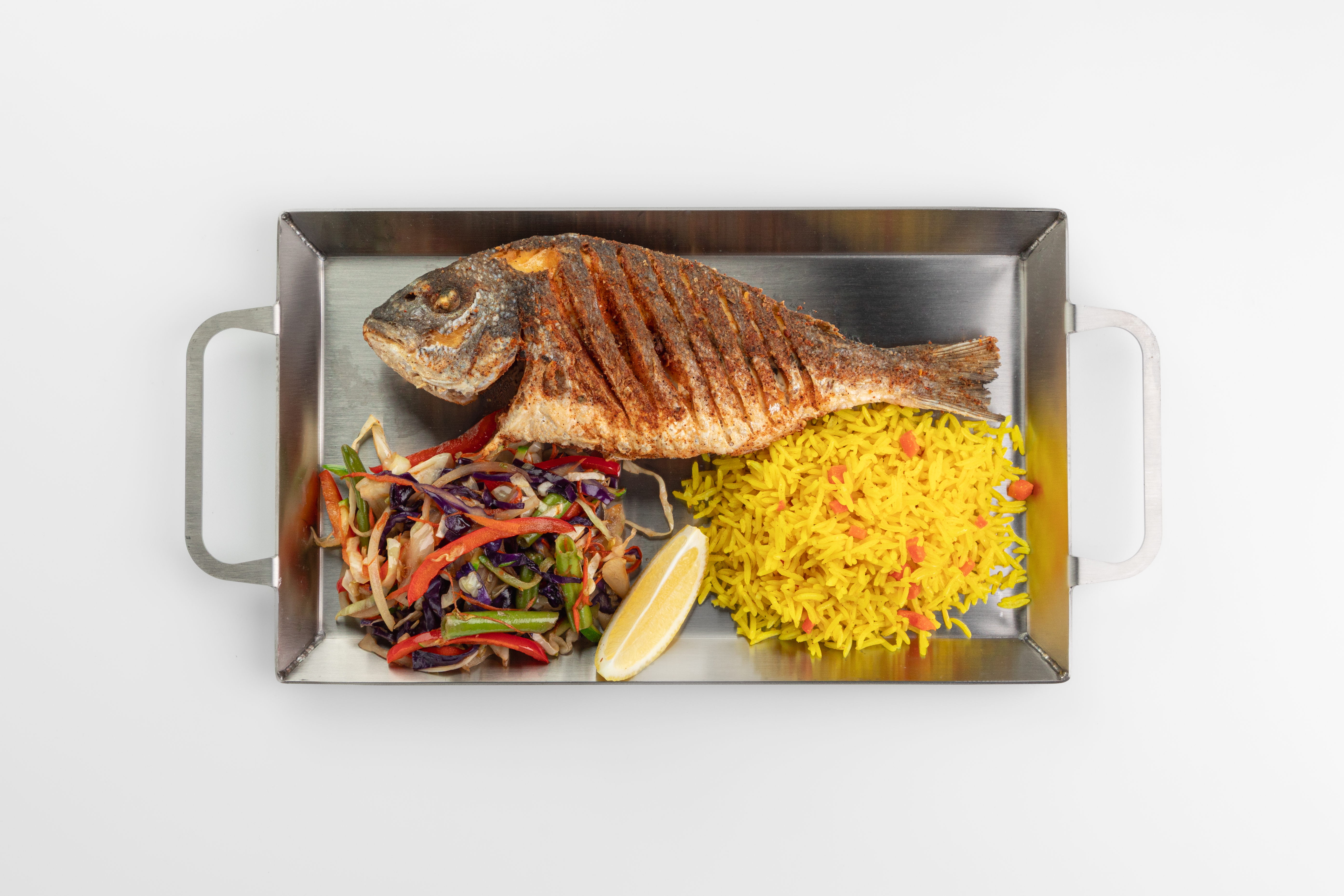 целая рыба обжаренная в панировке в ароматной смеси специй Дукка (восточная смесь специй на основе орехов, кориандра, кумина и кунжута)