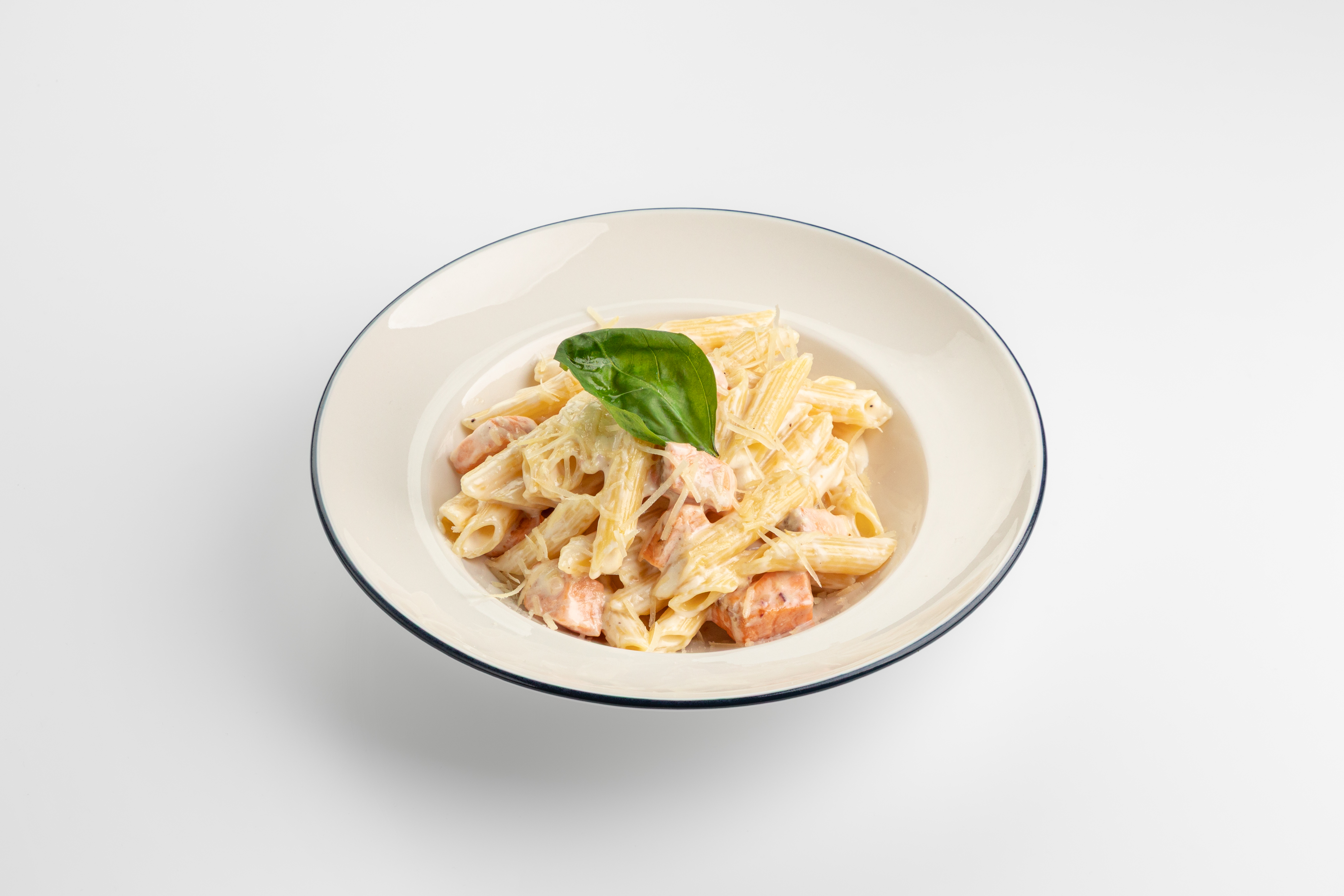пенне, сливочный соус, пармезан, филе лосося